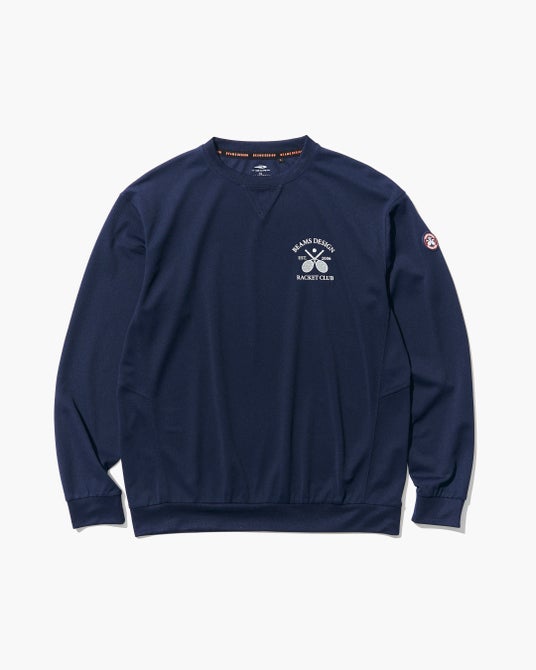 クラシックな「BEAMS DESIGN RACKETCLUB」グラフィックが特徴のテニスコレクション。襟リブはVガゼット付きのスウェットディテールでドライカノコ素材で仕上げたロングTシャツ。手を挙げやすいよう脇のカッティングを入れています。