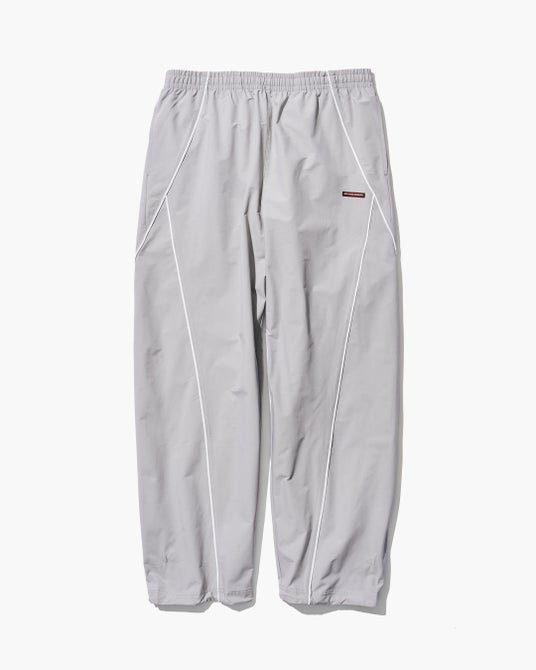 ストレッチポリエステル生地を使用したクロスウインドパンツ。リラックス感のあるストレートシルエットとパイピングデザインが特徴的。同素材のクロスウインドジャケットとセットアップでコーディネートが可能です。