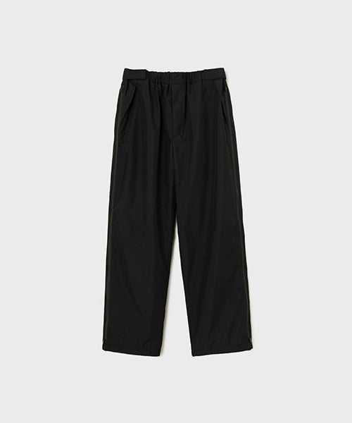 裾にはドローコードをいれて絞れるよう。ウエストにはドローコードとゴムで調整、さらに脇のタブでベルクロでの調整も可能です。ピスポケットにはコンシールファスナーポケット。シルエットは太すぎず細すぎない、ワイドストレートシルエット。