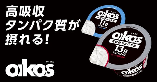 「ダノン オイコス」は、「カラダ動かす、ジブン追い越す。」をタグラインに、スポーツをはじめ体を動かすすべての人の良質なタンパク質補給を応援するブランドです。「ダノン オイコス」の全製品には、体へ吸収される割合が高く、筋肉合成などに有効利用される「高吸収タンパク質」が使用されています。「ダノン オイコス プロテインヨーグルト」は全ラインアップでタンパク質10g以上と高タンパクな上、脂肪ゼロ、低 GI、100kcal 未満(※中容量サイズの「高吸収タンパク質18g プレーン・砂糖不使用」は1カップ170gあたり107kcal)という特長を兼ね備えています。また、独自の水切りヨーグルト製法を用いた濃密でクリーミーな食感により、朝食はもちろん、間食や午後のおやつ、夜食など、幅広い喫食機会で支持されています。「ダノン オイコス プロテインドリンク」は、1本(240ml)で18gの高吸収タンパク質を手軽に摂取でき、常温保存が可能で持ち運びやすく、移動中や運動後など、多様なシーンにおけるタンパク質補給をサポートします。