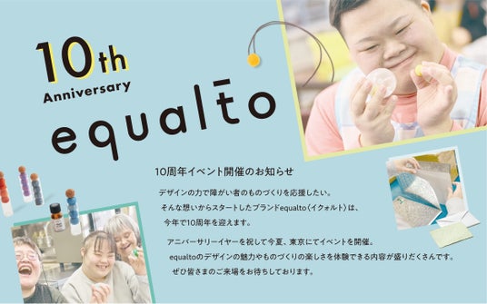 デザインの力で障がい者のものづくりを応援する「equalto(イクォルト)」は、創設から10周年を記念し、デザインの魅力やものづくりの楽しさを伝える10周年イベントを2024年8月21日(水)~9月1日(日)の12日間、東京・丸の内にあるデザイン発信拠点 GOOD DESIGN Marunouchi にて開催します。