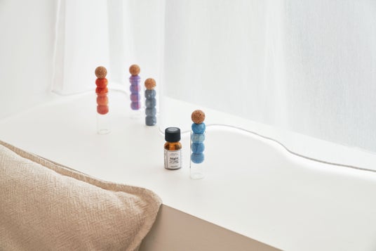 アロマディフューザー「My Diffuser」。ワークショップでは、フェルトボールづくり体験と、福祉事業所で作られたお好きな色のフェルトボールを選んで自分だけのディフューザーを作ることができます。