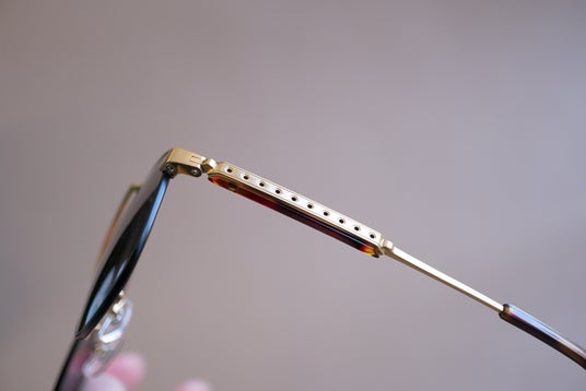 パイロットシェイプ。汗止めとセットでテンプルにもアセテート飾りを配置しており、どの角度から見ても美しいサングラス。