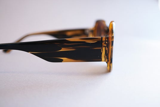 バイカーズシェイプ。80年代を意識したオールドスタイルで、フレーム裏のべっ甲柄やマーブル柄がアクセント。