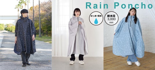 雨の日やアウトドアはもちろん、日常使いでも活躍する防水性の高いレインウエアが発売されます。(3月発売予定)アウター感覚で使えるレインコート、ボトムスが濡れるのを防ぐレインスカート、プリント柄が楽しいレインポンチョなど、使うシーンに合わせて機能性の高い素材を使用しています。男女兼用に対応したサイズとデザインで性別・年代を問わずお使いいただけます。