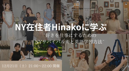 ●12月21日(土)21時より、ニューヨーク在住者のHinako氏によるオンラインセミナー「好きを仕事にするためのNYサバイバル術と英語学習方法」を開催