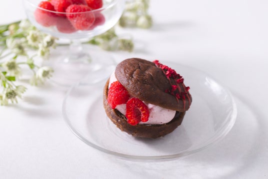 チョコ生地のほろ苦さとフランボワーズたっぷりの甘酸っぱいクリームが絶妙にマッチした、相性抜群の一品です。見た目はフランボワーズの色合いとまるっとしたフォルムが可愛らしくも、一口食べるとクリームに甘酸っぱさがプラスされた贅沢な味わいになっています。