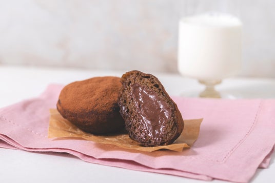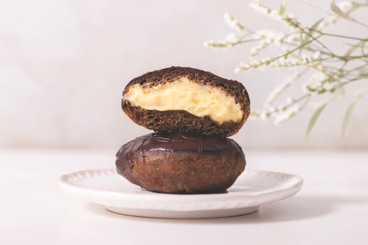 香りの良いバニラビーンズをふんだんに使ったカスタードとビターなチョコのハーモニーが楽しめる、当店の定番商品。さっぱりとしたミルク系カスタードと卵をふんだんに使った2種類のカスタードを絶妙なバランスで配合したことで、濃厚な中にも飽きがこないパティシエのこだわりが詰まった生ドーナツ。