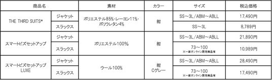 「デニムライクセットアップ」は3商品を展開。汎用性が高くオン・オフ着用できる商品や、ウール素材で高級感があり上品な装いが叶う商品など、お客様の多様なニーズにマッチします。