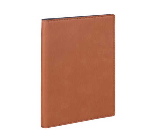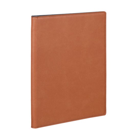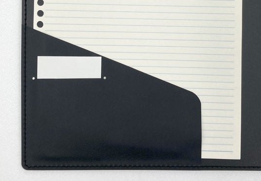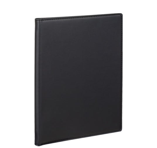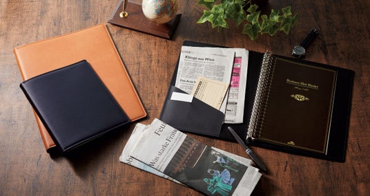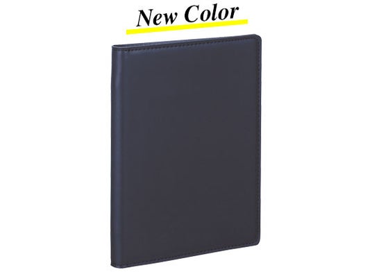 クリアホルダー収納対応サイズなので、ノートなど普段使い以外にも、店舗などでのメニューブックやフォトブックなど様々なシーンで活躍します。 今回、少し明るめのネイビーが追加され、ブラック、ブラウンと合わせて3色となりました。