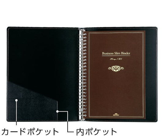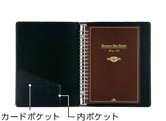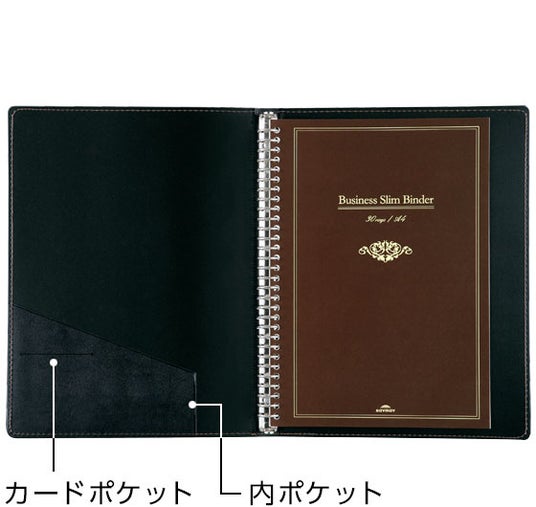 ビジネススリムバインダーは、背が丸くスリムタイプでビジネスバッグに収まり、商談や打ち合わせの際にノートと一緒に書類を持ち運べます。
