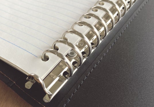 素材は上品で高級感のある合成皮革で、金属リングの多穴ノート付きバインダーです。