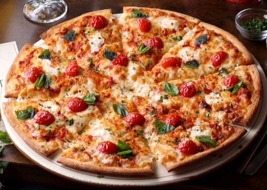 トマトのフレッシュ感、爽やかなフレッシュバジルに、クリーミーなマスカルポーネをトッピングした素材の美味しさが味わえるピザ。
