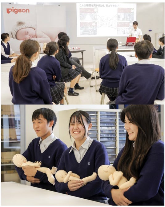 当社は存在意義として「赤ちゃんをいつも真に見つめ続け、この世界をもっと赤ちゃんにやさしい場所にします」を掲げ、赤ちゃんにやさしい未来を実現するために社会全体で育児を考え、赤ちゃんにやさしい行動につなげる取り組みとして全国の中学生に向けて「赤ちゃんを知る授業」(※1)を実施しています。