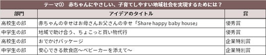 ピジョン提供のテーマ「赤ちゃんにやさしい、子育てのしやすい地域社会を実現するためには?」の応募アイデアが優秀賞を受賞