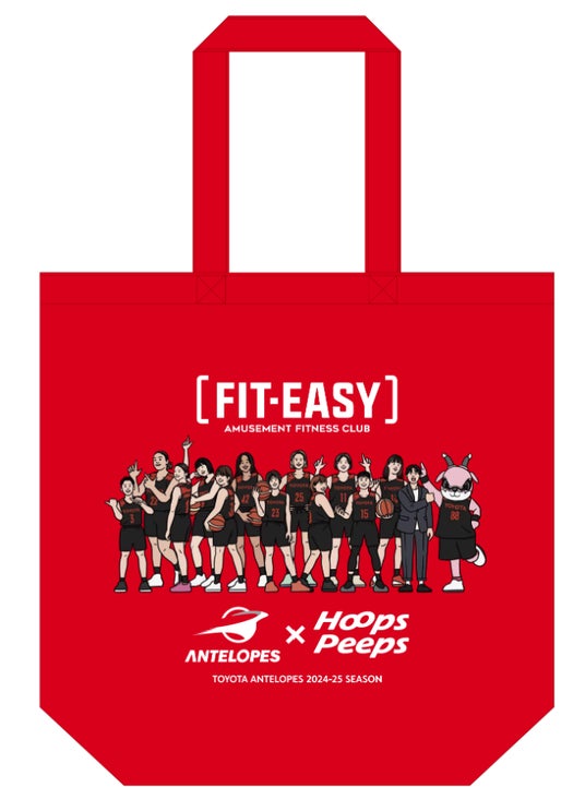 今回、アンテロープスとのコラボグッズが誕生しました。イラストを手がけるのは、複数のBリーグチームともコラボしているグラフィックデザイナー「MQ」よるバスケットボール選手のイラストシリーズ「HoopsPeeps」。選手全員が集合したイラストがあしらわれたフェイスタオルとトートバッグ、各選手などのステッカーの3種類を販売しました。(※数量限定)