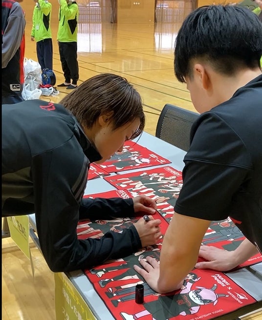 選手に勝利した方には、直筆サイン入りタオルをプレゼントしました。