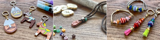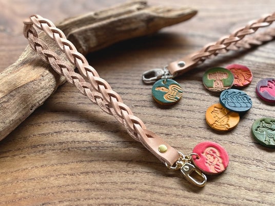 レザーキーホルダー作り、ルーンおみくじチャーム、ヴァイキングビーズで作るヘアゴムとキーホルダー