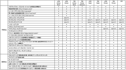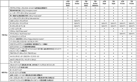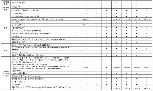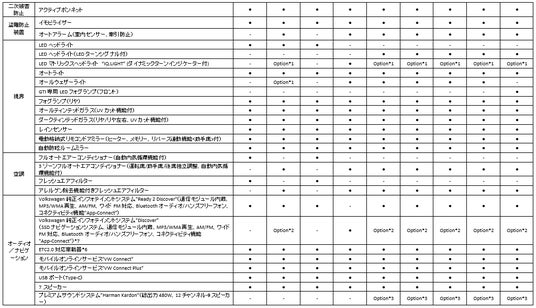 *3:ラグジュアリーパッケージ(*1、*2、*4とセットオプション。GTIではさらに*5とセットオプション)