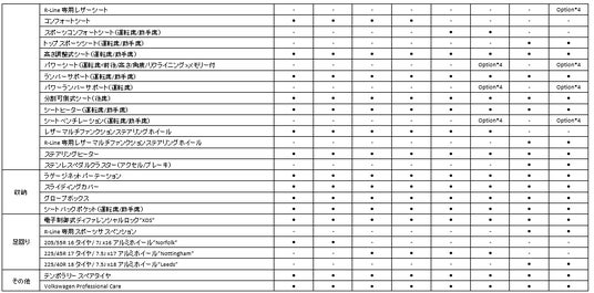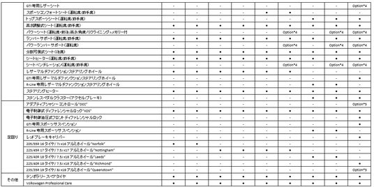 *4:レザーシートパッケージ(グレードにより専用デザイン。*1、*2とセットオプション。GTIではさらに*5とセットオプション)