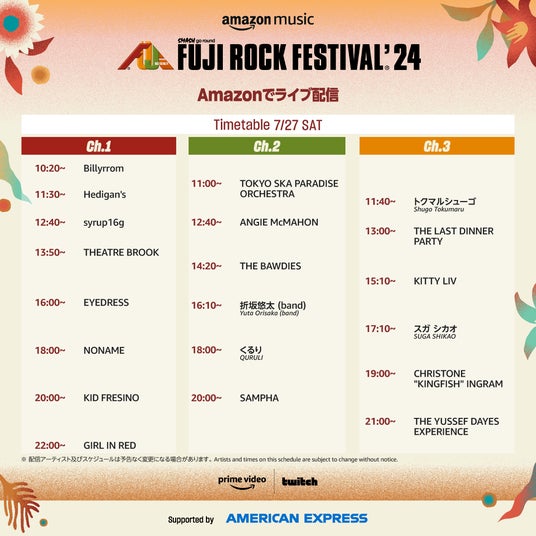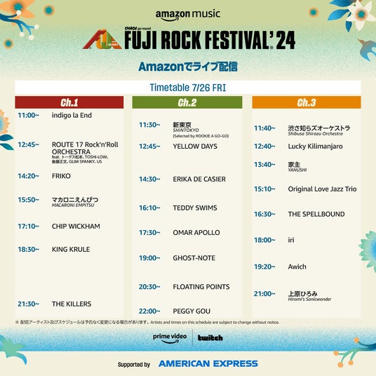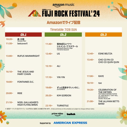 フジロックまであと1日!Amazon ライブ配信アーティスト公開!|FUJI ROCK FESTIVAL’24