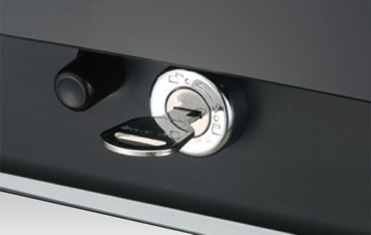 - セーフティロックシステム:カバーを閉めると自動的にロック。ボタンを押すことで開錠状態がキープされ、両手でルーフボックスが開けられる(特許第5396077号)。また、カバーがロックされないとキーが抜けないためキーのかけ忘れを防止