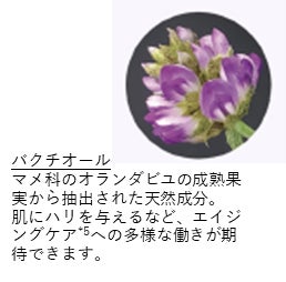 バクチオールとはエイジングケア*5に多様な働きが期待できる植物由来の美容成分です。肌のハリ不足やキメ荒れ、乾燥くすみなどのエイジシグナル*1に働きかけながら、敏感肌でも安心して使えるエイジングケア*5成分として注目されています。