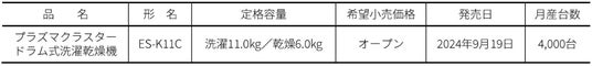 プラズマクラスタードラム式洗濯乾燥機<ES-K11C>を発売