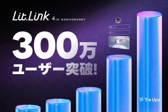 TieUps株式会社(本社:東京都渋谷区、代表取締役:小原 史啓以下、「TieUps」)は、運営するプロフィールページ作成ツール「lit.link」が2025年1月13日でリリースから4年を迎え、累計ユーザー数が300万人を突破したことをお知らせいたします。