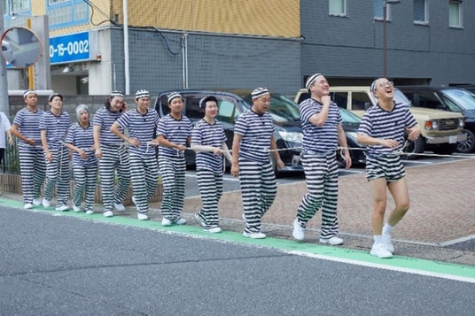 堀内看守の指定するシチュエーションに従い、10人で団結し、団体芸で世の中を笑顔にするべく街へ繰り出します。