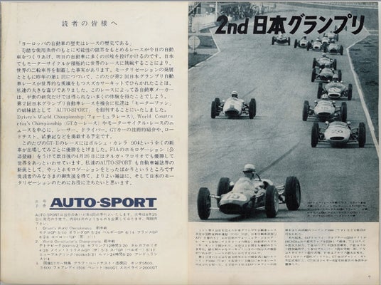 1962年にモーターファン臨時増刊として発売された本誌は最初はカナ表記の『オートスポーツ』でしたが、1964年からは英字表記の『AUTO SPORT』へと変更し、定期誌として創刊しました。