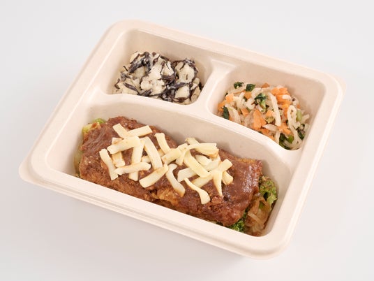 今回、新登場する「懐かしの和風チーズデミカツ」は、内容量300gを目指した「ハッピー300」シリーズの一つで、贅沢なミルフィーユ仕立ての豚カツに、どこか懐かしさを感じる優しいデミソースをたっぷりかけた一品です。和風デミソースは、だしの旨味を加えて奥深い味わいにしつつも、くどくなく、軽やかな後味に仕上げています。豚カツの下には、キャベツや玉ねぎ、ブロッコリーの野菜もしっかりと詰め込んでおり、最後まで飽きずにお召し上がりいただけます。ぜひ、こだわりのソースに具材を絡めてお楽しみください。