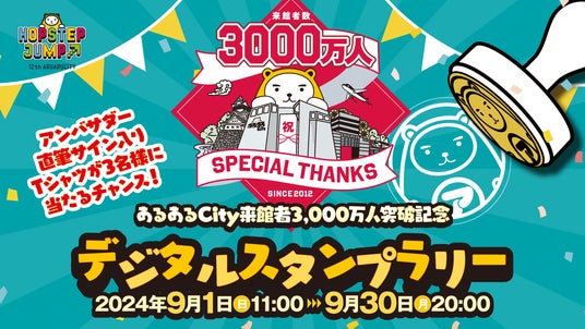 また、9月は「あるあるCity来館者3,000万人突破記念月間」と致しまして、あるあるCity12周年公式アンバサダーで声優の金子有希さん、高田憂希さん、前田佳織里さんの直筆サイン入り記念Tシャツが当たる「デジタルスタンプラリー」等、様々な企画を行う予定となっておりますのでどうぞお楽しみに!