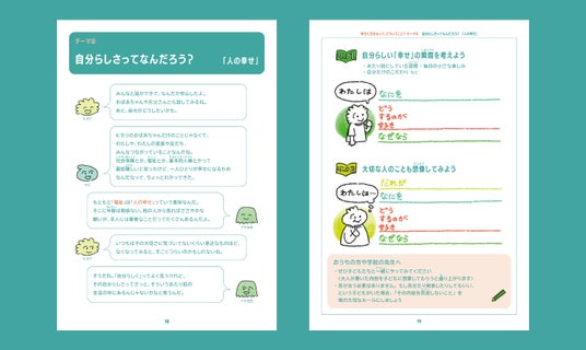 「自分や自分が大切な人にとっての「幸せ」ってなんだろう?小学生の登場人物たちと考える冊子紹介」(こここ)