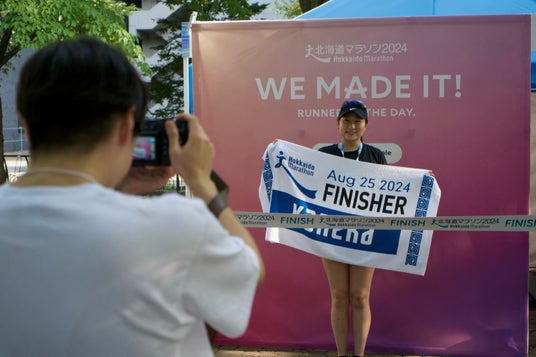 この度、北海道マラソンのフィニッシュブースにおいて、北海道と共同でフォトブースを出展する機会をいただき、大変光栄に思います。参加いただいたランナーの皆様に、プロのカメラマンによる素晴らしい笑顔の写真を提供できたこと、そして多くの方々から高い満足度をいただいたことを非常に嬉しく感じています。