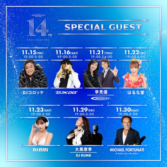 ミリオンアーティストから大御所ものまねタレントまで!超豪華ゲストが六本木のディスコ・マハラジャに登場!『MAHARAJA 14th ANNIVERSARY』開催決定!