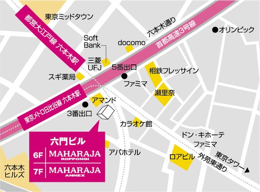 <東京メトロ日比谷線、都営地下鉄大江戸線/六本木駅 3番出口より徒歩1分>