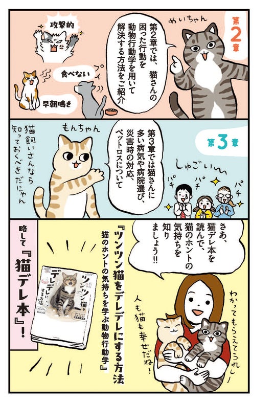 1. 本書を読めば、5つのステップで「あの子がおひざに乗ってきた!(ToT)」状態に!? 動物行動学を学んで、猫さんの気持ちを知れば、もっと仲良しになれ、さらに問題行動(早朝鳴き、食べない、攻撃的など)も解決できます。なお、本書では病気や災害、ダイエットもカバーしており、猫の楽しい総合教科書のようなものとお考え下さい。