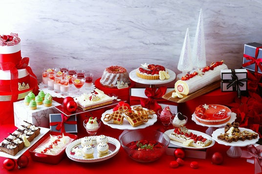 カスタマイズコーナーには、スノーマンやサンタクロースの帽子をトッピングできるシェフズスペシャルパフェや定番のしぼりたてモンブランをラインナップしたほか、ワッフルは生クリームやプレッツエル、マーブルチョコレートをトッピングしてトナカイ風にカスタマイズしていただけ、フォトジェニックなランチョンマットとともに写真撮影もお楽しみいただけます。