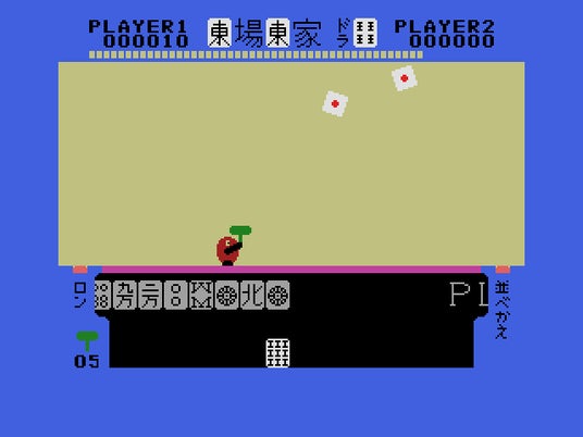 本作は1983年にリリースされたアクションゲーム。プレイヤーはジャン吉くんを操作して、左から流れてくる麻雀牌をハンマーで叩き落として役を作ることになります。