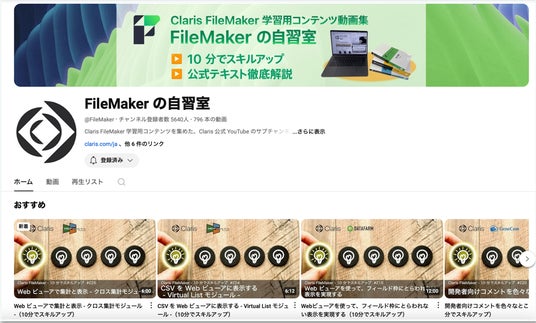 Claris 公式 YouTubeサブチャンネル「FileMaker の自習室」