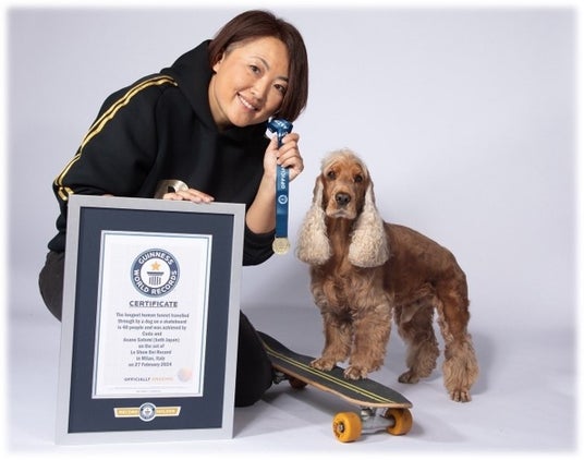 スケボードッグ体験ギネス世界記録に認定されたスケボー犬コーダくんと里美さん&スケボー犬ゲストによるデモンストレーション、エキシビジョン。初心者でもOKなスケボー犬体験会を実施いたします。
