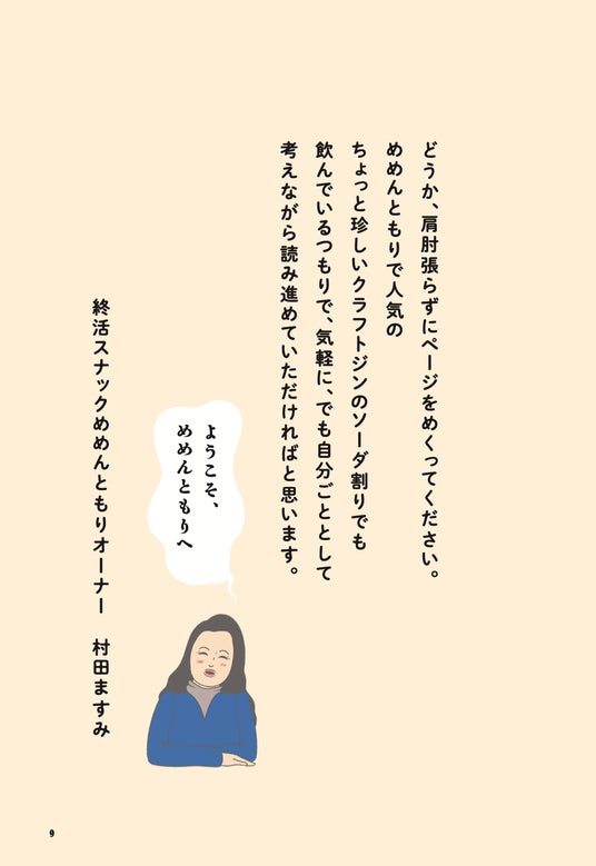 「カラオケないけど棺桶あります」 「一回でも死について考えてみませんか?」20代で母親を含む親戚3人を短期間で失うという経験を持ち、その経験から「死」について深く考えるきっかけを得られた著者村田ますみさん。2024年2月には「終活スナック・めめんともり」(都内)を開業。スナックママとして、人々の死生観に触れる機会と場ををつくり、「死」をより身近なものにし、人と人との繋がりを生み出しています。