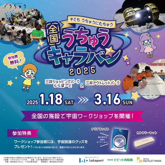 三井ショッピングパーク ららぽーと・三井アウトレットパークで宇宙ワークショップを体験しよう!全国15施設で小学生向け宇宙イベント「全国うちゅうキャラバン」を開催!