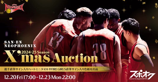 株式会社モバオク(本社:東京都渋谷区、代表取締役社長:生田目 知之、以下モバオク)がエンゲート株式会社(本社:東京都中央区、代表取締役:城戸 幸一郎、以下エンゲート)と業務提携し提供するスポーツチーム公式オークションサービス「スポオク」にて、B.LEAGUE所属の三遠ネオフェニックスが実施する「三遠ネオフェニックス 2024-25シーズン クリスマスオークション」を2024年12月20日(金)から開始します。