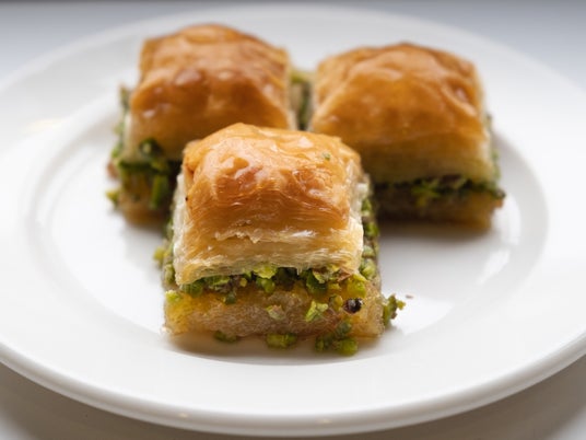 また、「バクラヴァ」は作り方や見た目によって異なる名前が付けられます。「フストゥック・サルマ(ピスタチオ・ラップ)」もそのひとつ。ピスタチオペーストをふんだんに使用し、薄い生地で巻き上げた贅沢な一品です。