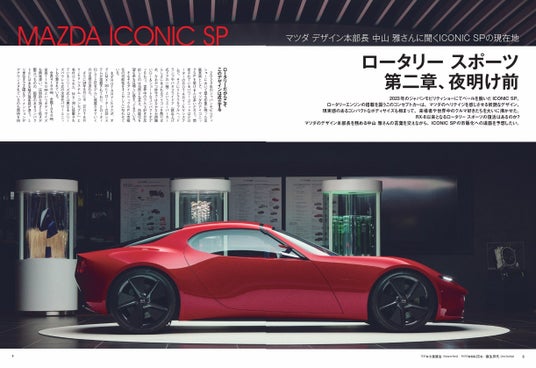 2023年のジャパンモビリティショーにて出展されたアイコニックSP。2ローターEVシステムを搭載し、リトラクタブルヘッドライトやバタフライドアを採用した流麗なフォルムは世界中で話題をさらいまくりました。果たしてこのクルマの現実度はいかなるものなのか? マツダデザイン本部長の中山さんのインタビューを通じて、アイコニックSPの現在地を探ります。