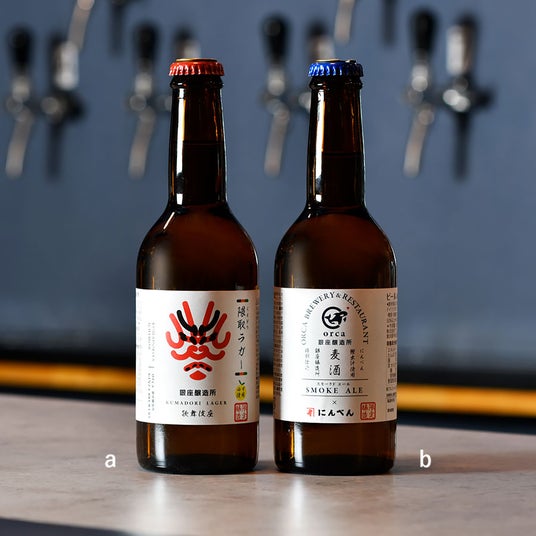 <歌舞伎座>とコラボレーションした“隈取ラガービール”は、代表的な隈取の一つである勇者の役に用いる紅隈のモチーフをラベルに。柚子の風味で味わいも華やかなビールです。また、独特な燻製香(ラオホ)がある “ラオホビール”に、<にんべん>の本枯鰹節を合わせたビールは、より豊潤な香りとしっかりとしたコクのあるオンリーワンの味わいです。