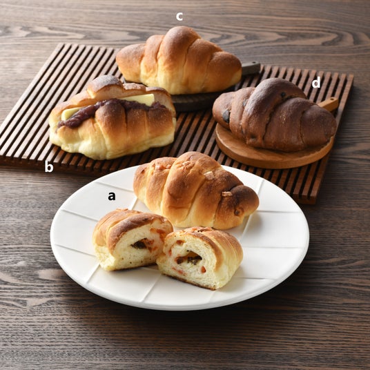 a. 超辛口鮭と海藻のバターロール 1個 351円 b. あんバターロールサンド 1個 401円