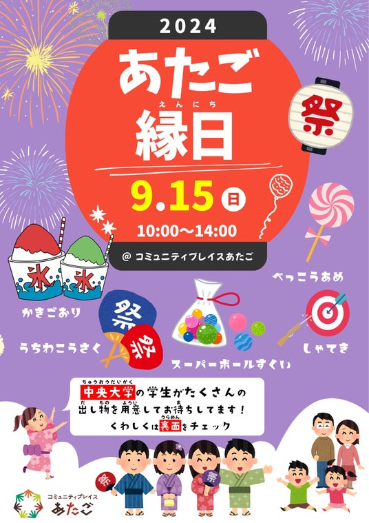 中央大学の学生ボランティアによる「2024あたご縁日」を9月15日(日曜日)開催!
